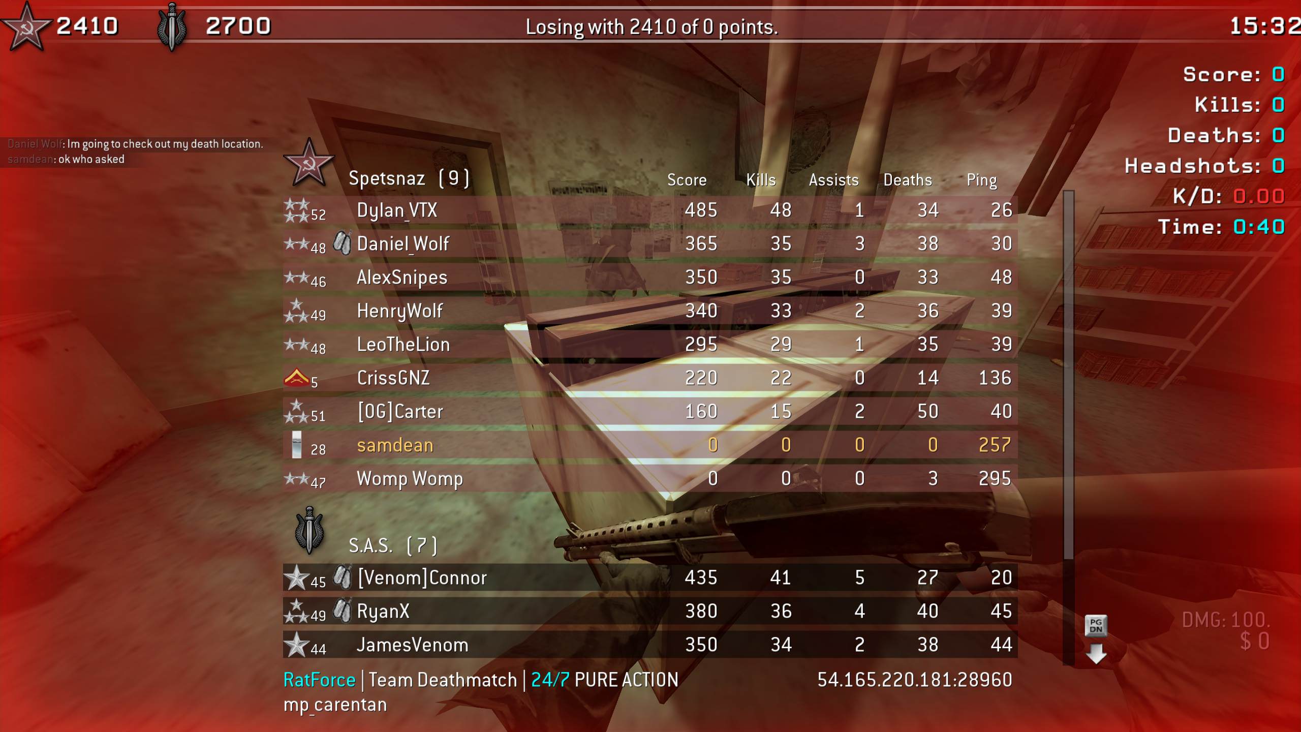 | KICKS | RatForce | Team Deathmatch | 24/7 PURE ACTION | 2026-01-31 06:15:10 | 2836 | Report | |