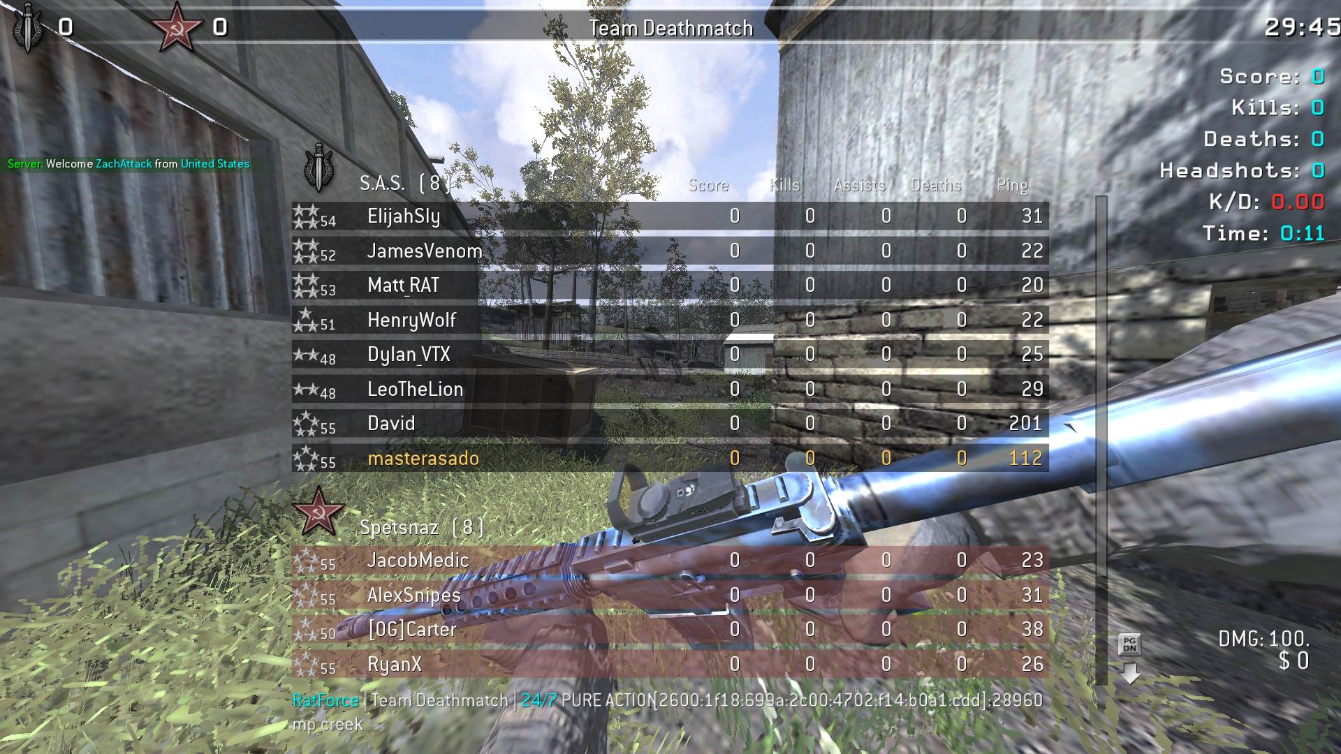 | ilikebigmilkers | RatForce | Team Deathmatch | 24/7 PURE ACTION | 2026-01-27 01:57:15 | 0138 | Report | |