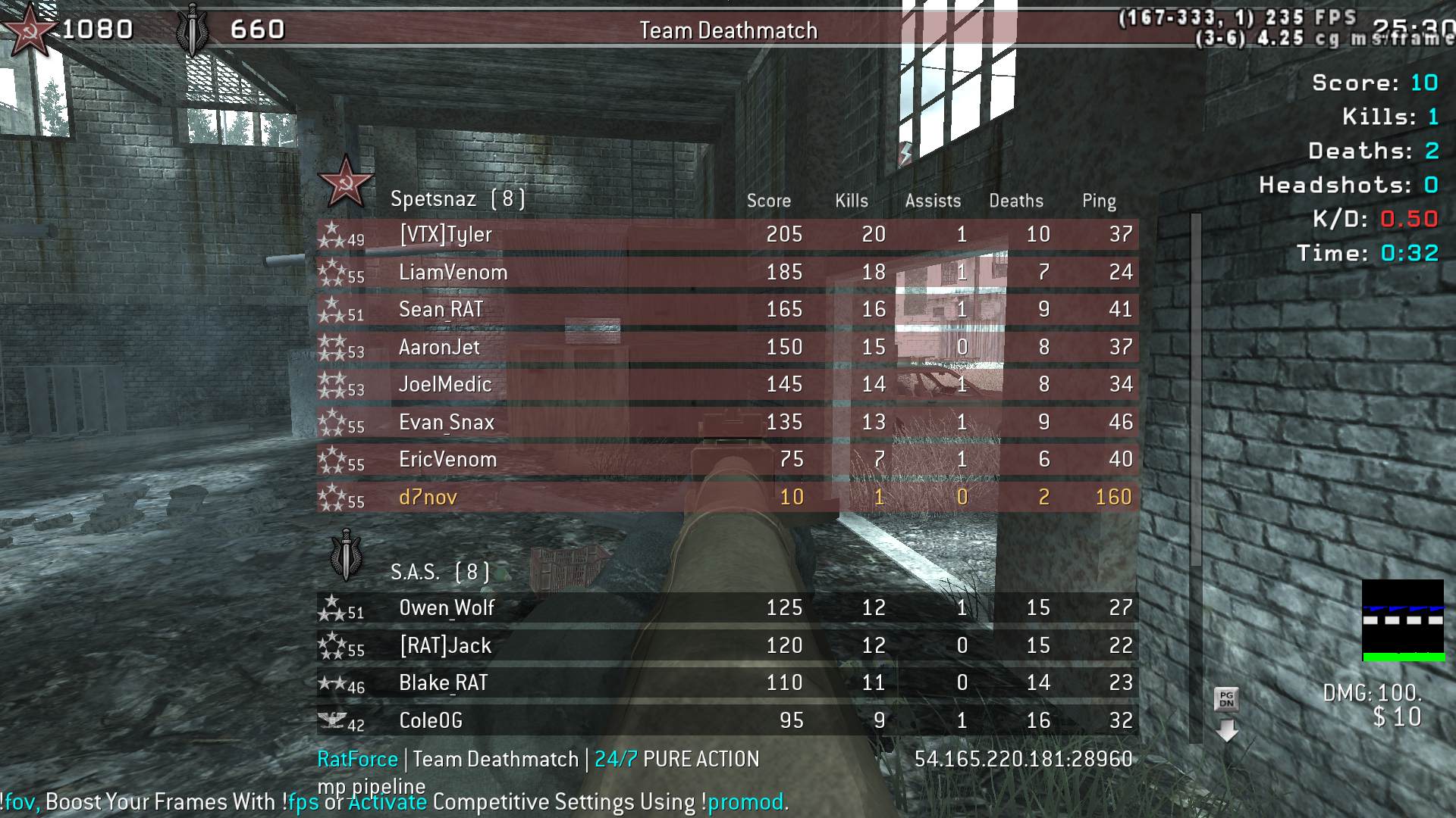| avnhero225 | RatForce | Team Deathmatch | 24/7 PURE ACTION | 2026-01-25 16:17:52 | 8671 | Report | |