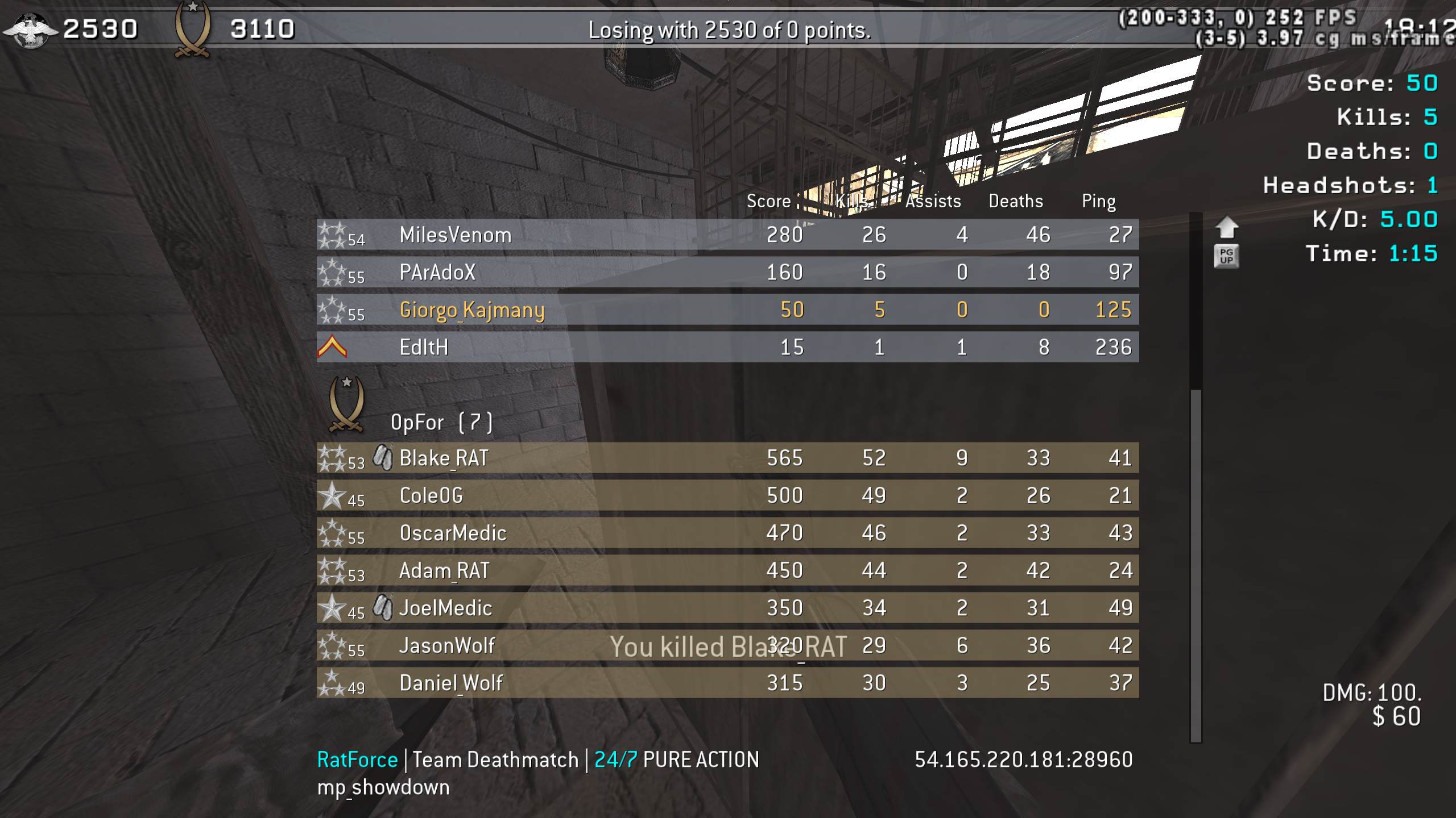 | 1111 | RatForce | Team Deathmatch | 24/7 PURE ACTION | 2026-01-12 16:38:52 | 2705 | Report | |