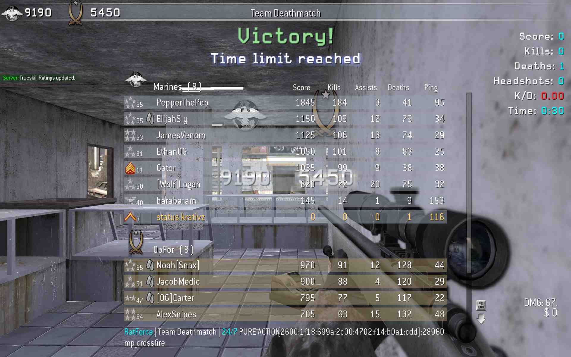 | barabaram | RatForce | Team Deathmatch | 24/7 PURE ACTION | 2026-01-09 21:04:46 | 5862 | Report | |