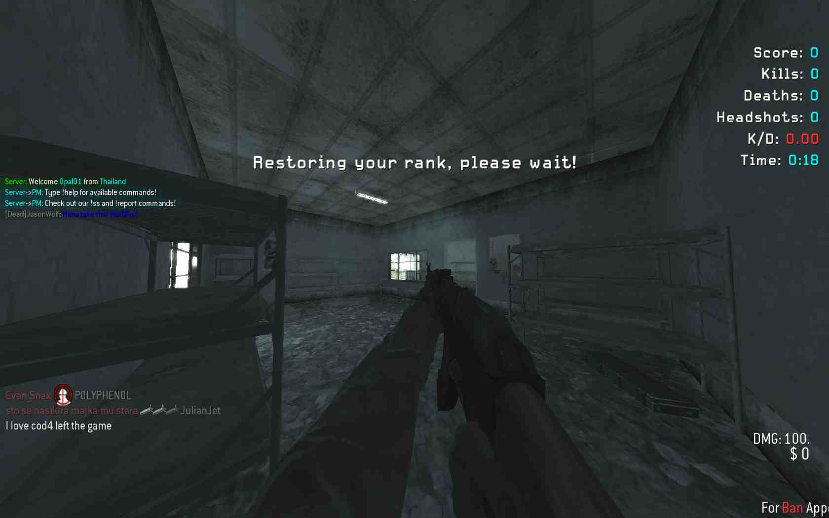 | Ykgod | RatForce | Team Deathmatch | 24/7 PURE ACTION | 2026-01-07 08:31:46 | 1814 | Report | |